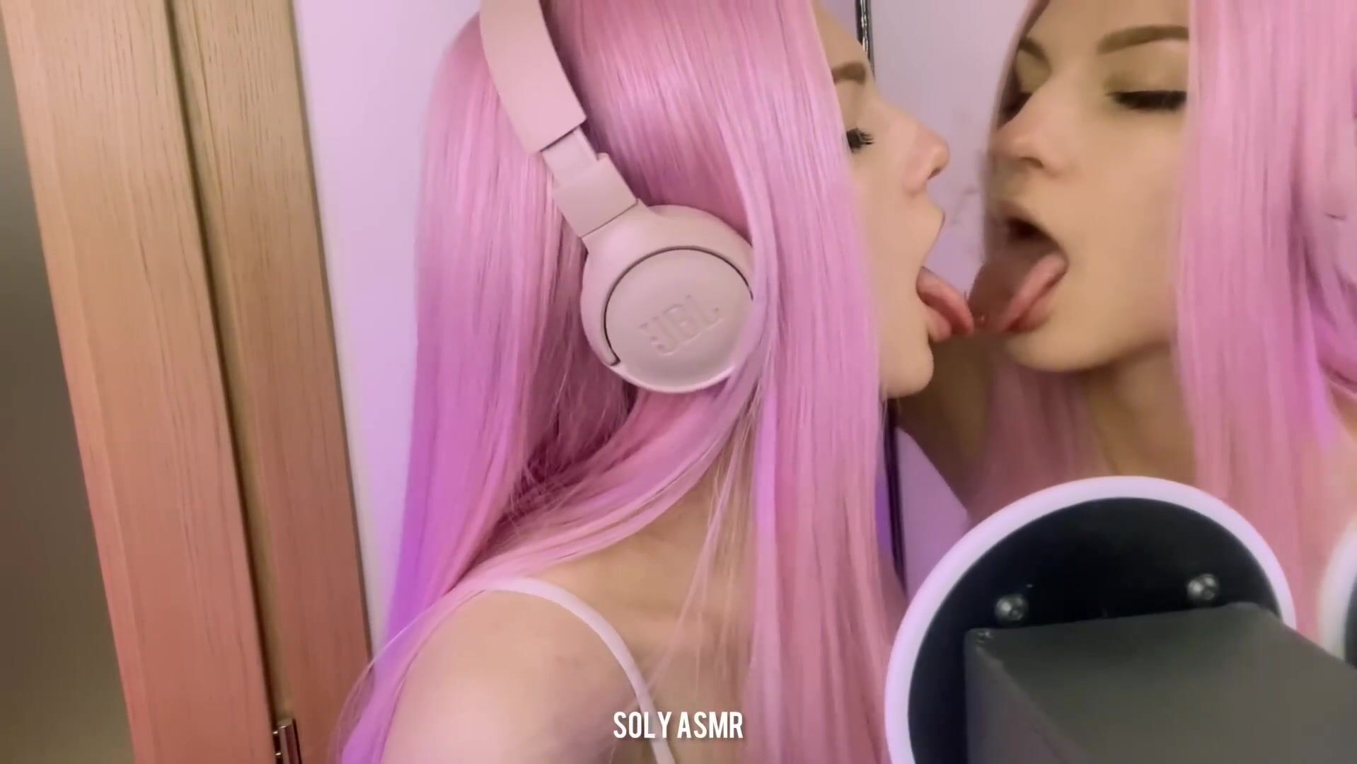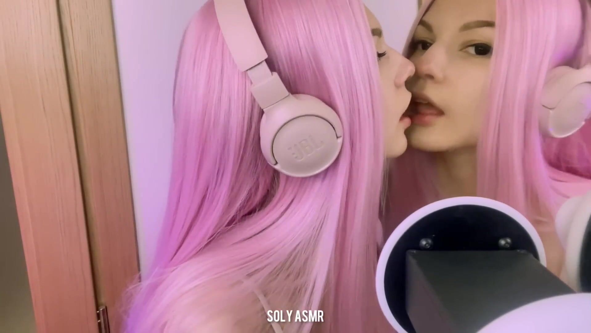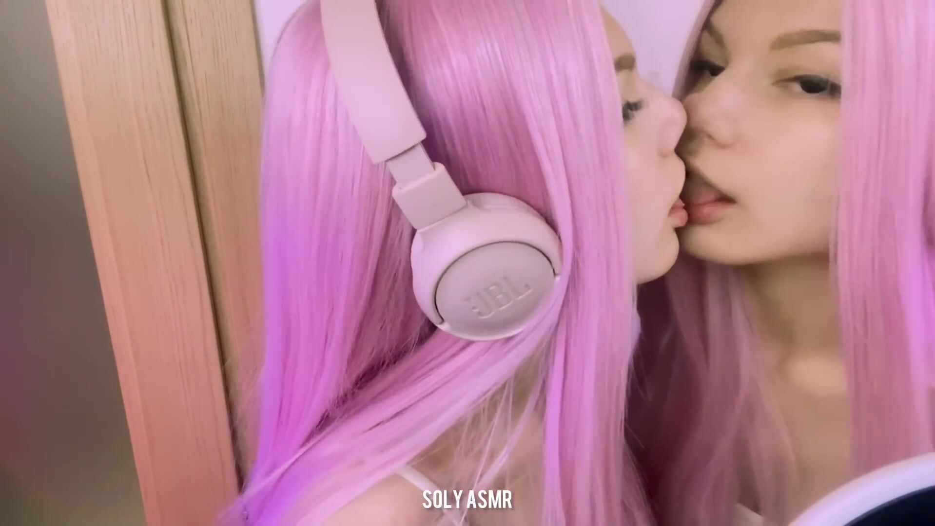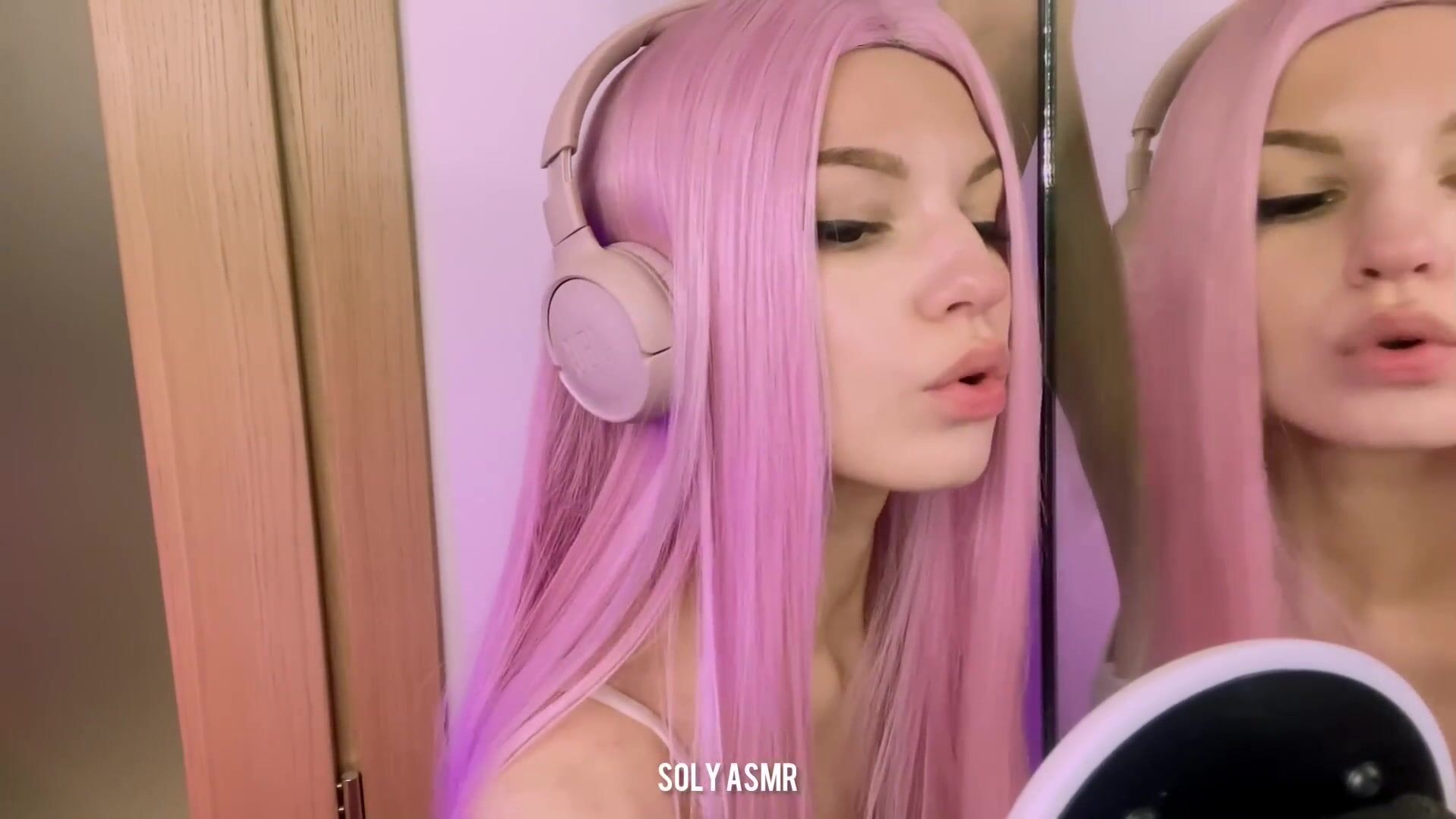 Soly asmr Pink Hair Babe Licking Mirror Hot ASMR Video