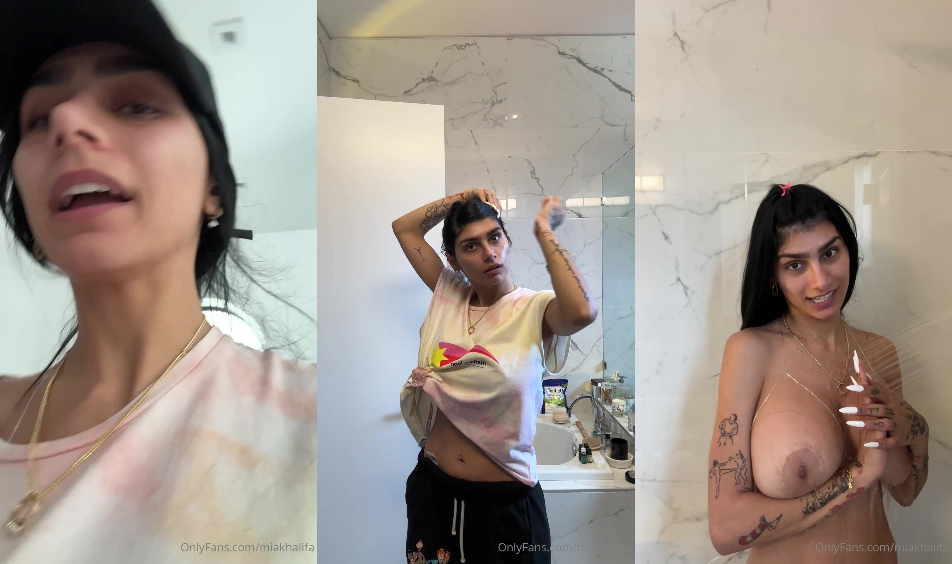 Mia Khalifa Squeezing Huge Tits in the Nude Shower Video
