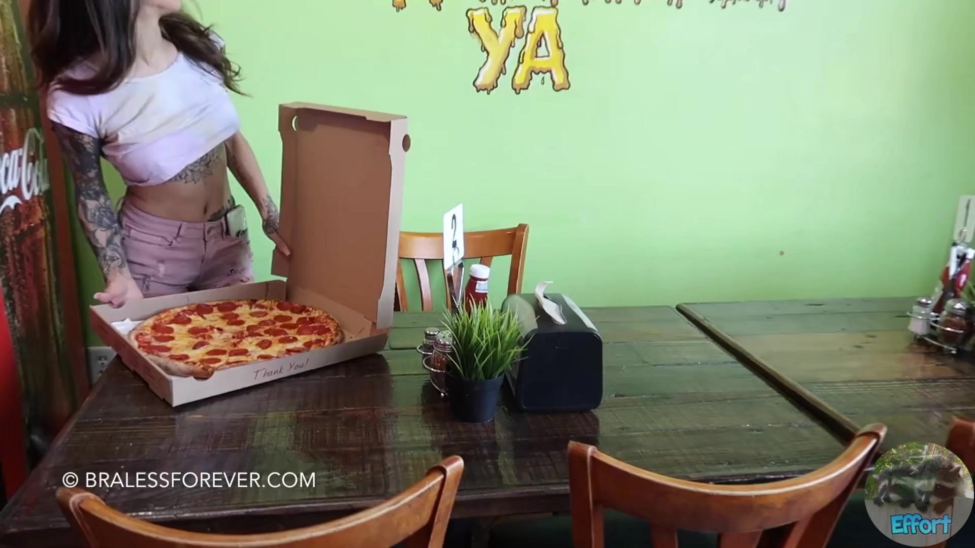 Bralessforever Clarissa In A Pizza Shop With Her Perfect Tits Out On Full Display