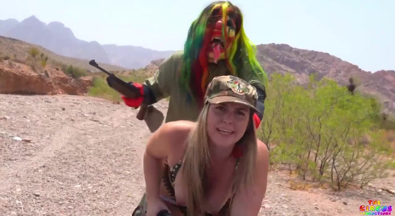 GIbbyTheClown stars in a wild outdoor military fantasy video as she gets fucked in a desert combat zone in her camo lingerie!