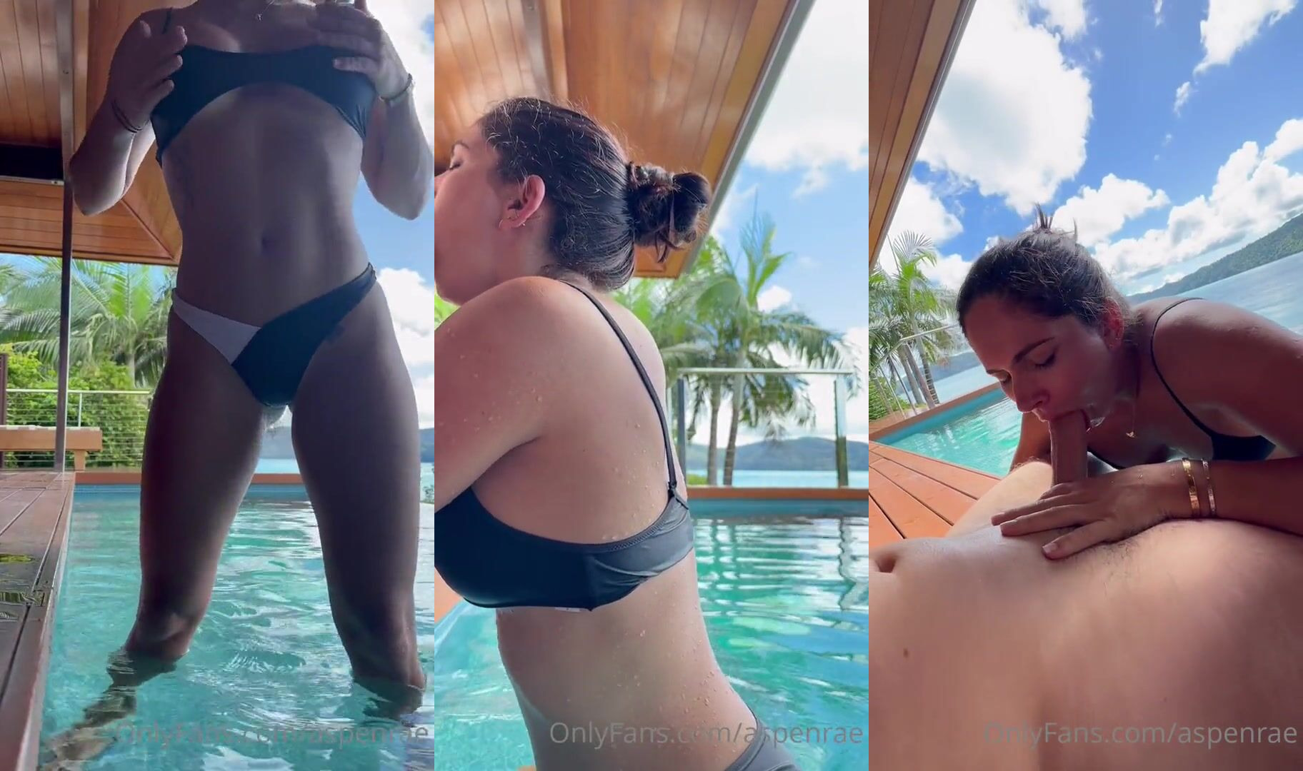 Description: Curvy goddess Aspen Rae teases in a bikini by the pool before getting wild in this POV video blowjob and fuck session.