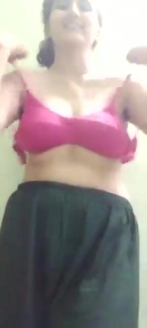 The wife took off her shirt and pajama and pressed her white boobs, showing the triangle of the pussy Indian Video Tape