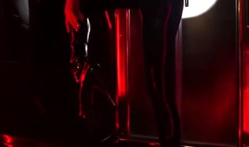 Naughty Russian Cosplay Babe Teases in Tight Black Latex Catsuit Video