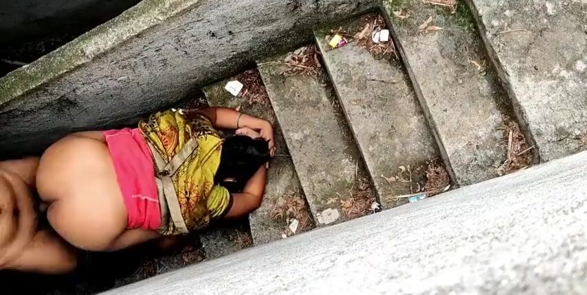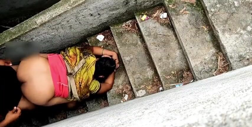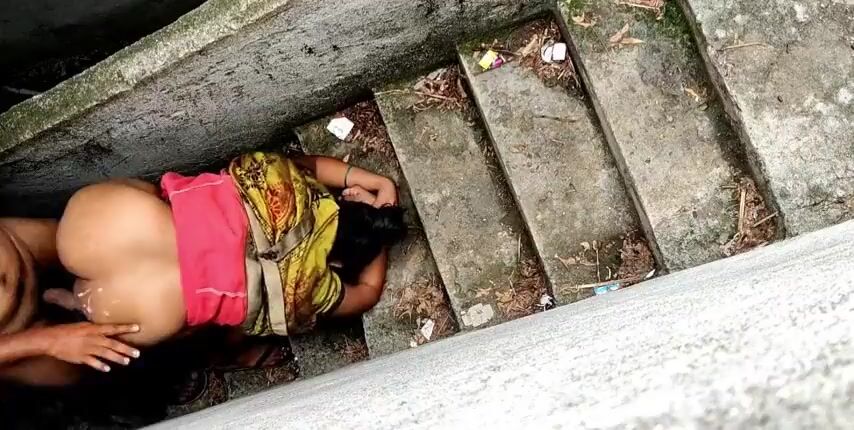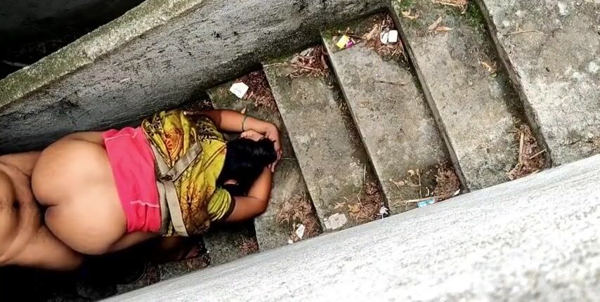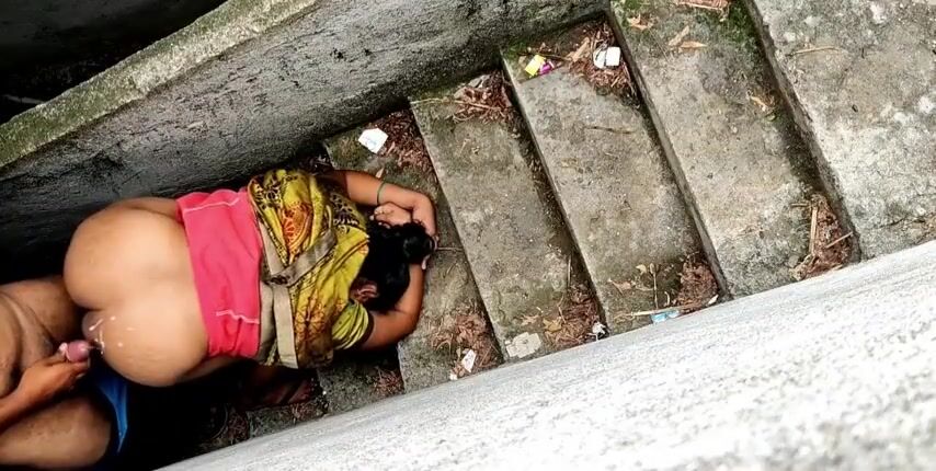 aunty doggystyle fucks cum on the ass on the stairs Indian Video