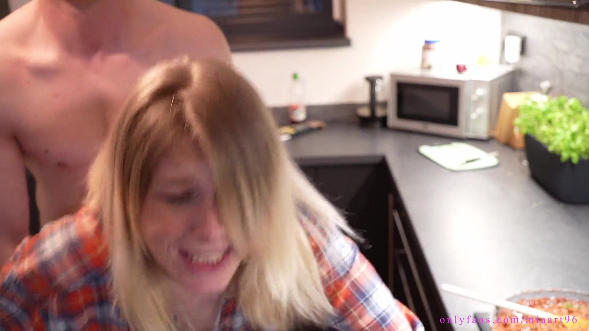 Miaart Young gets many screaming orgasms and deep creampie while trying to get pregnant in kitchen